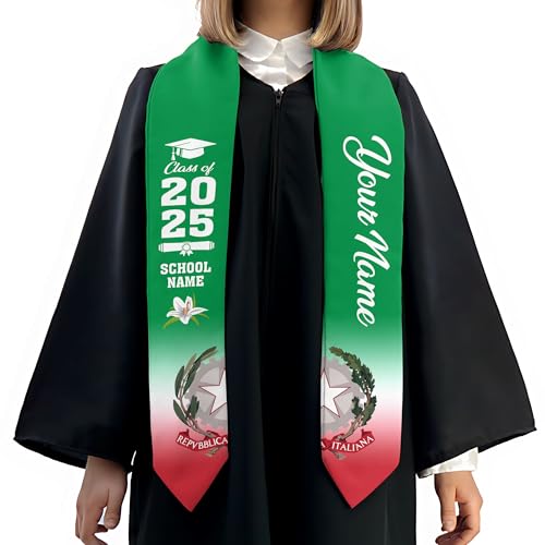 • 🎓 Cultural Pride: Adorned with the striking colors and iconic symbols of Italy, this stole is perfect for graduates who want to honor their Italian heritage. The design celebrates Italy's rich cultural legacy, adding depth and meaning to your graduation day.