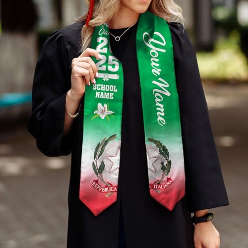 Mostefy Personalized Italian Graduation Stole 2025, Italia Sash, Italian Flag Stole, Sash for Graduation's Day Gift 6