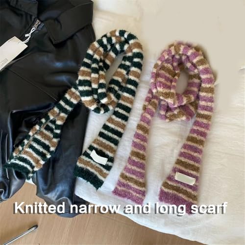 More information about Women Skinny Scarf Knit Thin Knit Belt Long Tie Scarf Bag Handle Wrap Choker Elegant Striped Scarf Decoration