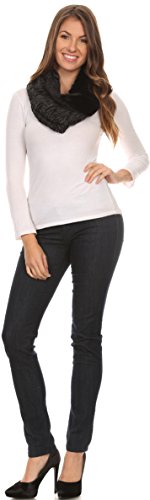 HOT ! Sakkas Dalien Short Length Two Sided Faux Fur Ribbed Cable Knit Infinity Scarf
