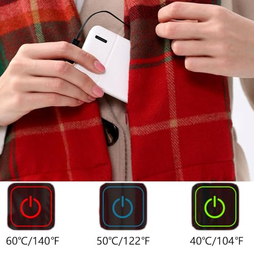 • 【Three-speed Temperature Control】This winter electric scarf can be quickly heated by 3 temperature control settings: high temperature red light about 60℃/140℉, medium temperature blue light about 50℃/122℉, low temperature green light about 40℃/104℉.