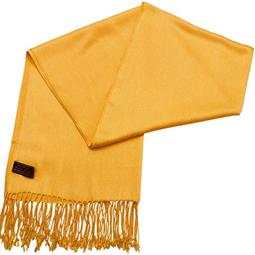 CJ Apparel Amber Yellow Solid Yellow Gold Color Tassels Design Nepalese Shawl Scarf Wrap Stole Throw Head Wrap Pashmina Hand Made in Nepal New 1
