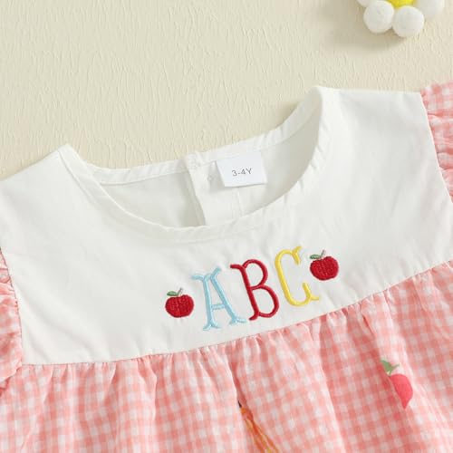 Kid Baby Girl Back to School Outfit Plaid Pencil Embroidery Fly Sleeve Smocked Dress Toddler First Day of School Dress 4