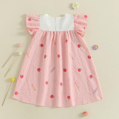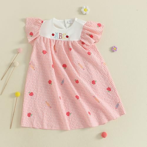 Kid Baby Girl Back to School Outfit Plaid Pencil Embroidery Fly Sleeve Smocked Dress Toddler First Day of School Dress 6