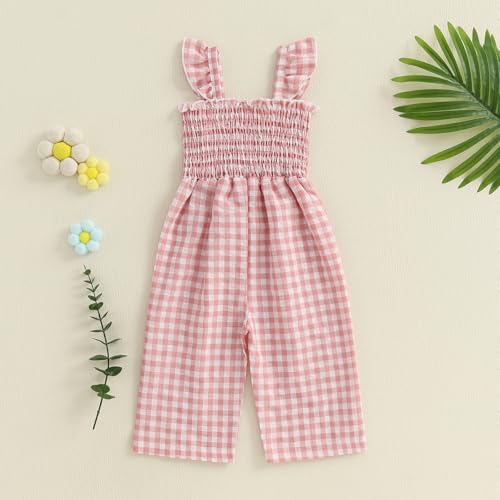 Baby Girl Summer Clothes Toddler Plaid Ruffled Smocked Romper Wide Leg Overalls Sleeveless Suspender Jumpsuit 4