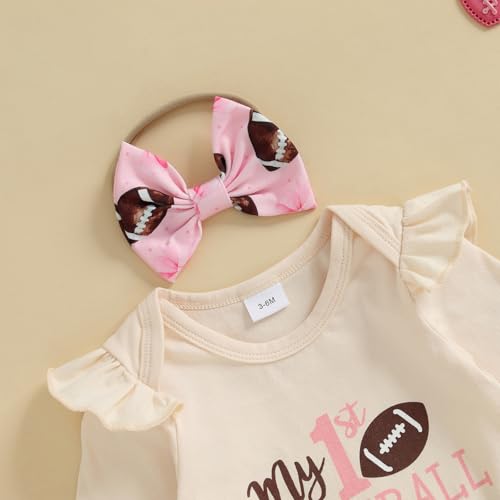 My 1st Football Season Baby Girl Outfit Ruffle Long Sleeve Romper Rugby Skirt Shorts Set Leg Warm Headband 3