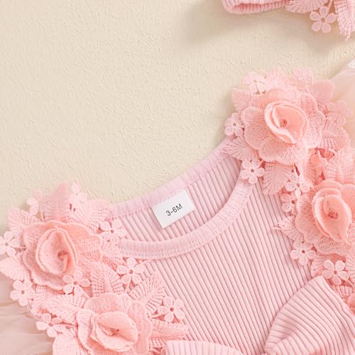 Baby Girl Romper Dress Flower Lace Tulle Dresses with Headband Newborn Photography Birthday Outfits 6