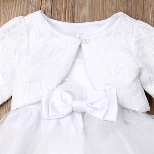 3Pcs Infant Baby Girl Tutu Tulle Wedding Gown Dress+ Lace Cardigan + Baptism Hat Party Outfits 6