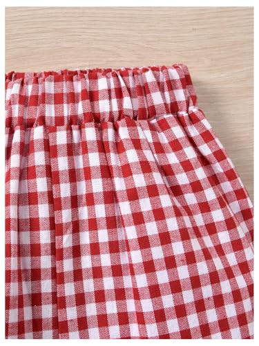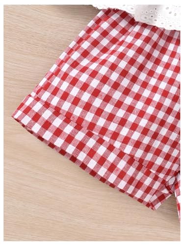 MakeMeChic Toddler Baby girls 2 Piece Plaid Bow Cute Outfit Eyelet Embroidery Ruffle Tiered Cami Top and Shorts Set 6