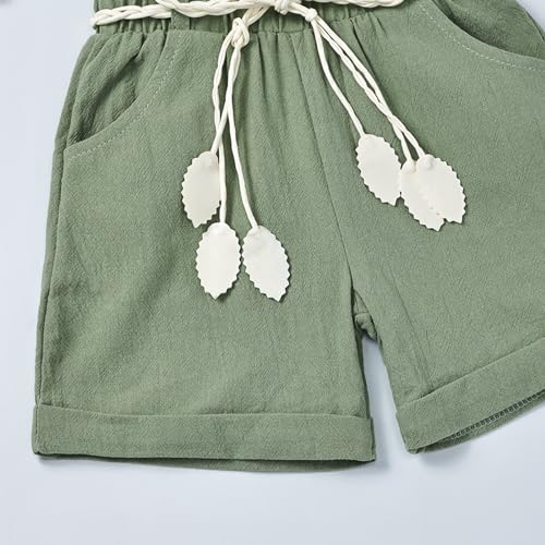 Baby Girl Clothes Summer Short Set Infant Toddler Girls Outfit T-shirt Linen Shorts with Belt Cute Clothes Set 4