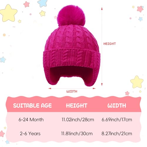 Toddler Baby Winter Hat with Earflap Kids Warm Twisted Knit Hat Infant Pom Pom Beanie Ski Cap for Baby Girls Boys 6