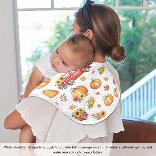 2 Pack Muslin Burp Cloths Fall Pumpkins Trucks Cotton Baby Burp Cloths Extra Absorbent and Soft Burping Cloth for Baby Boys Girls, Large 22" x 11" 6