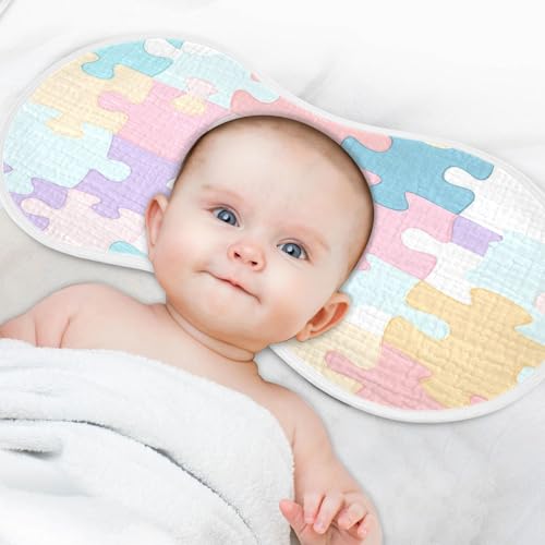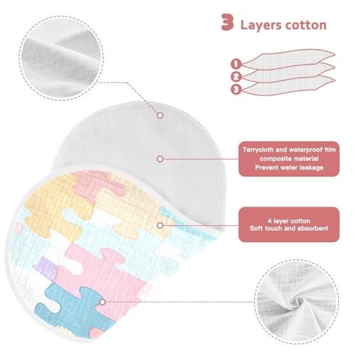 Pastel Colored Puzzle Pattern Plant Burp Cloths Cotton Baby Washcloths,Large 22x11in Burping Cloth Absorbent and Soft for Newborn Baby Boys and Girls,4 Pack 7