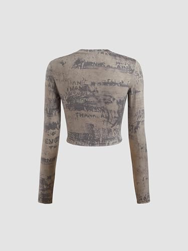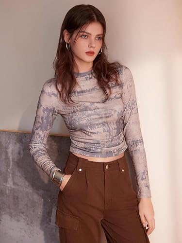 More information about CIDER Women’s Round Neck Tie Dye Ruched Long Sleeve Fitted Crop Top Graphic Y2K Grunge Shirts