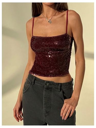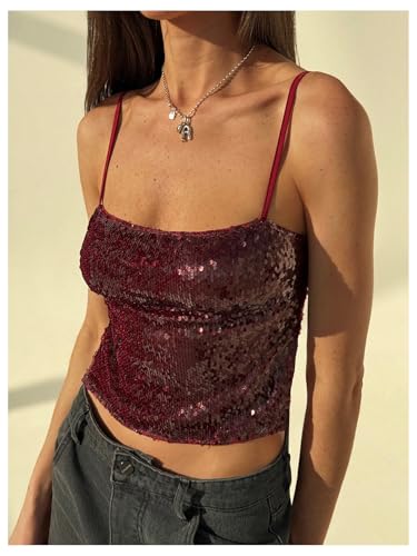 HOT ! MakeMeChic Women's Y2K Sequin Tops Sparkly Beaded Top Glitter Concert Outfits Party Open Back Dressy Crop Tank Tops