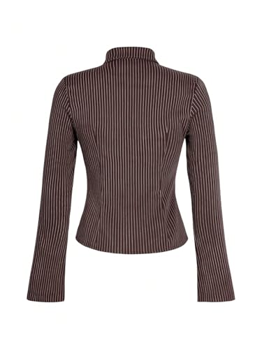 SweatyRocks Women's Striped Collar Long Sleeve Slim Fit Button Down Shirts Work Blouse 6