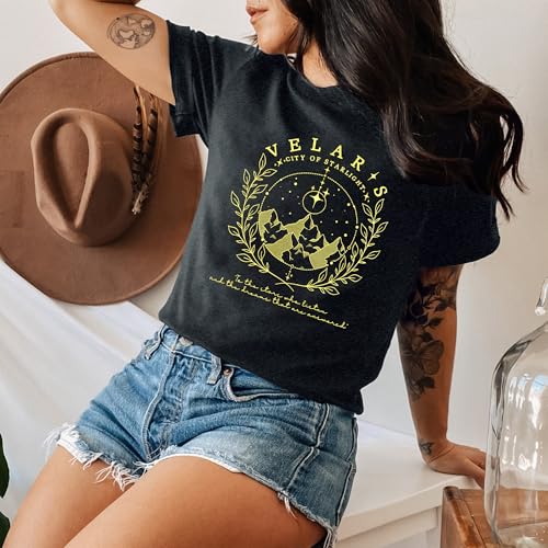 HOT ! Acotar Velaris Shirt Women City of Starlight Shirt Vintage Stars Graphic Tee Funny Letter Printed Short Sleeve Tops