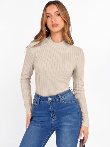 HOT ! ANRABESS Women's Long Sleeve Tops Mock Neck Ribbed Knit Slim Fit Pleated Basic T Shirts Lightweight Sweater Going Out Clothes