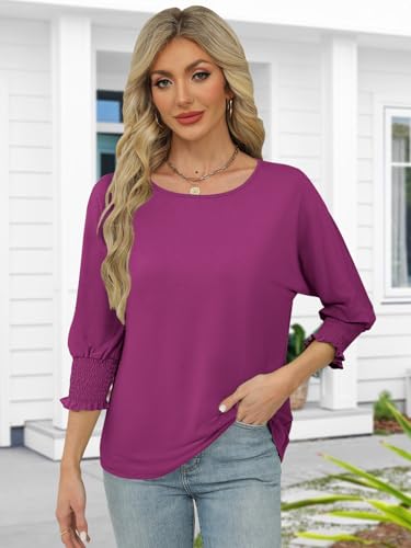 • Stylish 3/4 Sleeves with Smocked Cuffs – Designed with elegant smocked cuffs, these 3/4 sleeve shirts for women add a trendy touch to your wardrobe while offering a relaxed fit for easy movement