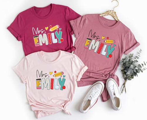 Custom Teacher T-Shirts, Personalized Shirts with Name, Back to School Gifts, Women's White Teacher Outfit 1