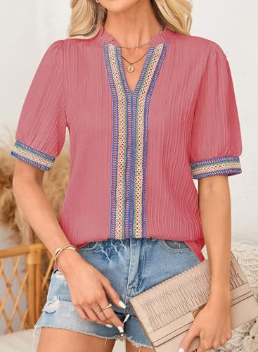 • Flattering Fit: This top designed with a relaxed silhouette and subtle details; features a gorgeous boho-inspired design with delicate embroidery, making it a must-have piece for your summer tops