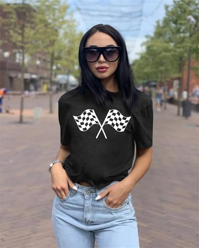 Racing Shirt Women Checkered Flag Printed T-Shirt Race Day Tee Funny Racing Apparel Causal Short Sleeve Tops 6