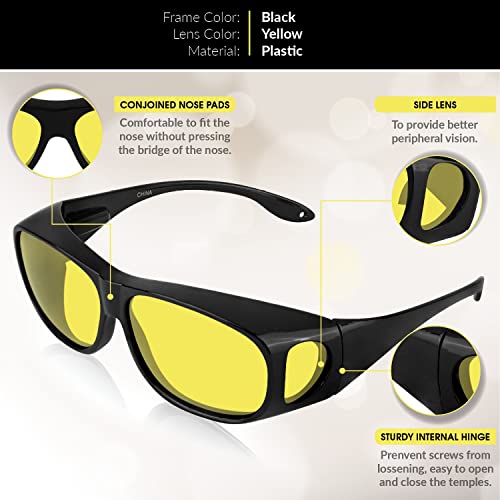 • ✔Practical Comfort: No compromise on your comfort! Our glare-reducing glasses for night driving goggles reduce eye strain while sitting lightly on the nose. Our fit over sunglasses comes with a microfiber cloth is added to keep the women’s yellow sunglasses flawless.