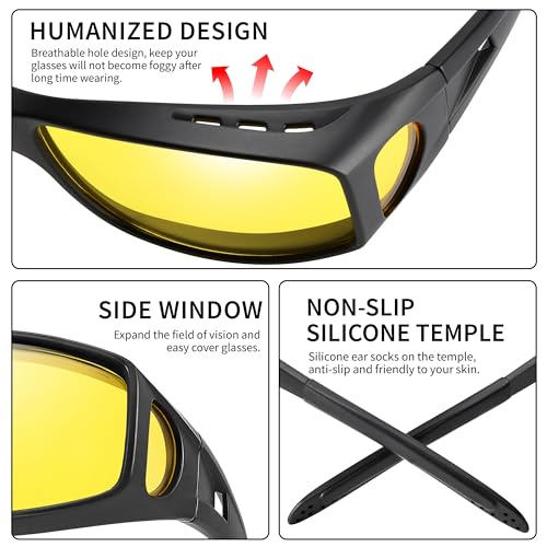 Night Driving Glasses for Men & Women - Polarized Anti Glare Fit Overs with Wrap-Around HD Yellow Lens 4