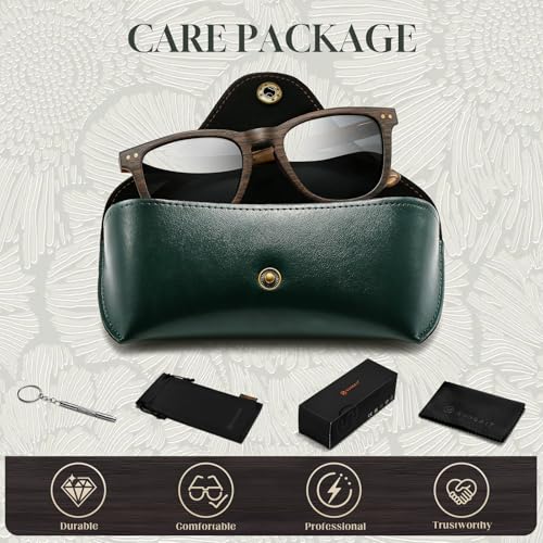 • Packed with Care Sized to Fit: Gift-ready package includes PU leather case, cloth, pouch, mini screwdriver. Frame width 142mm, lens height 48mm, designed to fit most faces.