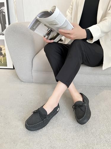 More information about Men's Moccasin Slippers With Tie Cow Suede Memory Foam House Shoes, Indoor And Outdoor Warm Loafer Slipper