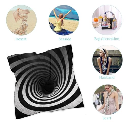 HOT ! Head Scarf Black And White Spiral Tunnel Printed Neck Scarves Women's Fashion Silk Feeling Scarf for Hair Wrapping And Sleeping at Night