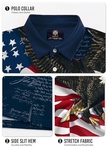 • SOFT FABRIC: Made from a lightweight blend of polyester and spandex, this american flag polo shirt men offers breathable comfort and a bit of stretch. It keeps you cool and moving freely whether you're on the golf course or firing up the grill.