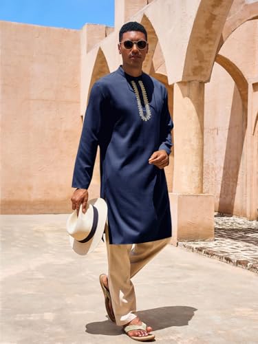• Design: The mens vintage kaftan thobe robe is feature with henley button collar with embroidery design, knee length, long sleeve, solid color, side split and regular fit style. The simple and classic design create a stylish look