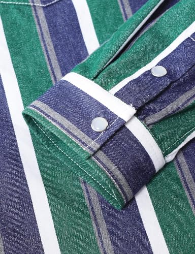 JOGAL Mens Striped Western Shirts Long Sleeve Pearl Snap Casual Cowboy Shirt Regular Fit Work Shirts with Two Pockets 4