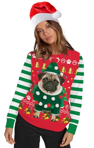 Ainuno Ugly Christmas Sweatshirt for Men Women Funny Holiday Shirt Long Sleeve Tops 4