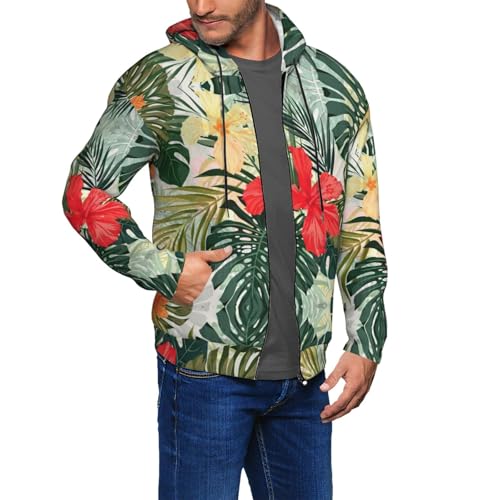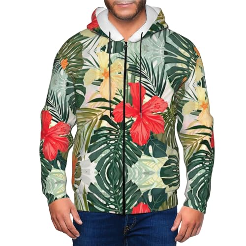 HOT ! Summer Hawaiian Print Men Hoodie Stylish Winter Hoodies For Warm Zip Up Hooded Sweatshirt With Pockets
