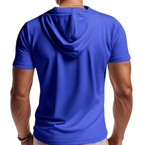 Short Sleeve Hoodies for Men Quarter Zip T-Shirts Gym Workout Athletic Hooded Work Big and Tall Shirts with Pocket 5
