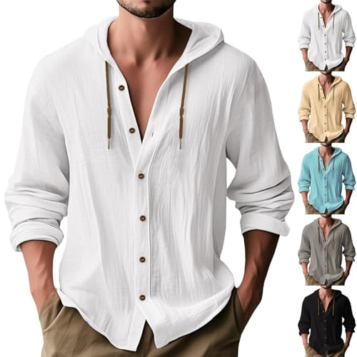 HOT ! Men's Linen Hooded Shirt, Summer Cotton Linen Shirt,Fashion Lightweight Hoodie (White,XX-Large)