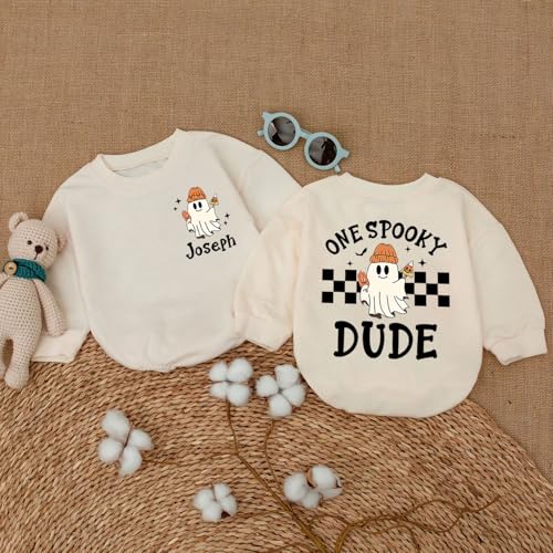 Personalized My First Halloween Baby Boy Outfit, 1st Halloween Baby Boy Long Sleeve Sweatshirt Romper 4