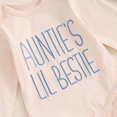 Aunties Bestie Baby Clothes Gender Neutral Unisex Funny Letter Bodysuit Romper Solid Leggings Pants Hat 3Pcs Outfits 4