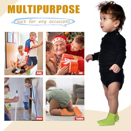 HYCLES Non-Slip Toddler Socks 12 Pairs Anti Skid Ankle Low Cut Socks for Baby Kids Boys Girls 6-12 Month 1-7 Years 6