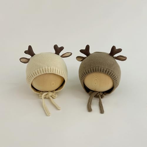 Yuly Thereisno Warm Winter Hat for 6-24M Infant Baby Soft and Comfortable Knit Cap Trendy Solid Bonnet Cap with Deer Horn Decor 1