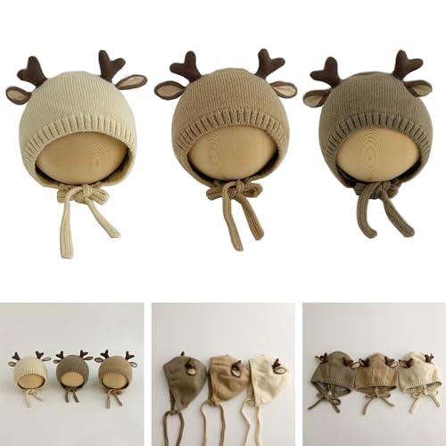 Yuly Thereisno Warm Winter Hat for 6-24M Infant Baby Soft and Comfortable Knit Cap Trendy Solid Bonnet Cap with Deer Horn Decor 3