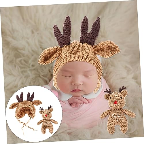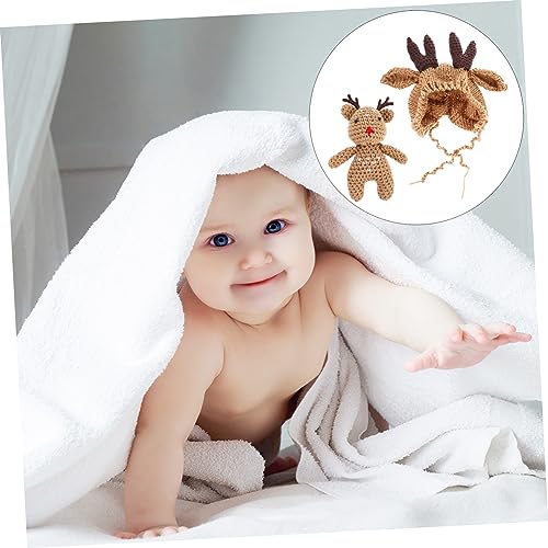 Winter Warm Knit Hat with Adorable Antler Design Thick Woolen Cap for Newborns Months Skin Friendly Thermal Beanie for Boys and Christmas Photo Prop Brown 2
