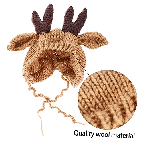 Winter Warm Knit Hat with Adorable Antler Design Thick Woolen Cap for Newborns Months Skin Friendly Thermal Beanie for Boys and Christmas Photo Prop Brown 5
