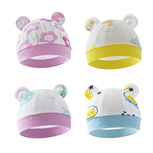 Baby Bear Ear Turban Hat for Newborn Boys Girl 0-6M Soft Breathable Baby Hat Headdress Hospital Hat 4