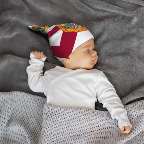 Newborn Baby Hat, Flag of Florida Print Soft Top Knot Beanie Cap, Cute Baby Headwear for 0-6 Months Black 6