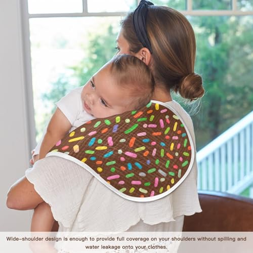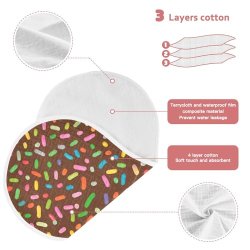 HOT ! Candy Sprinkles Scattered- Muslin Burp Cloths 22x11 Inch - 4-Layer Organic Cotton & TPU Waterproof Lining, Absorbent Baby Bibs for Boys/Girls with Hanging Loop