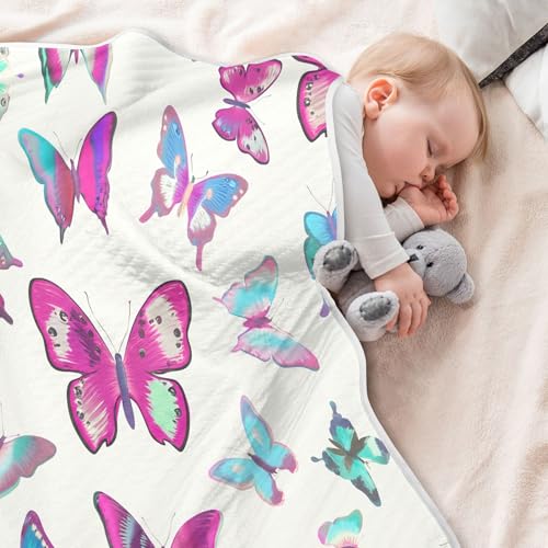 HOT ! Burbuja Butterflies Baby Blanket for Boys Girls, Nursery Soft Warm Swaddling Receiving Baby Blankets, 30x40 in Toddler Blanket
