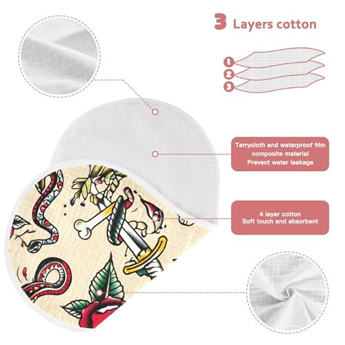 xigua Traditional Tattoo Baby Burp Cloths for Newborn Boys and Girls 2 Pack, Soft & Absorbent Cotton Baby Burp Cloth, Baby Washcloths, Newborn Towel, Burp Rags 6